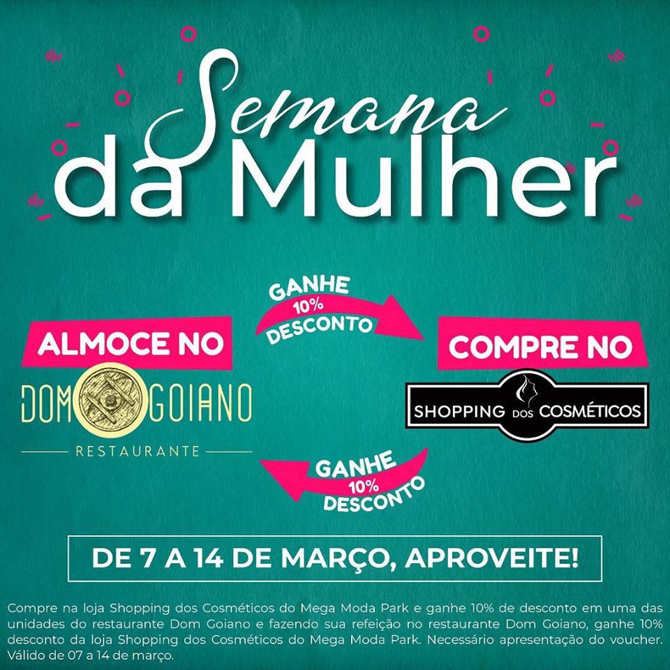 admin 2019-03-25T15:23:26+00:00Amanhã é o Dia da Mulher! . E pra comemorar essa data tão especial, nós fizemos uma parceria incrível que elas vão adorar. . É a Semana da Mulher: Dom Goiano + Shopping dos Cosméticos! . Entre os dias 7 e 14 de março, todas as mulheres que almoçarem no Dom, vão ganhar desconto no [...]
